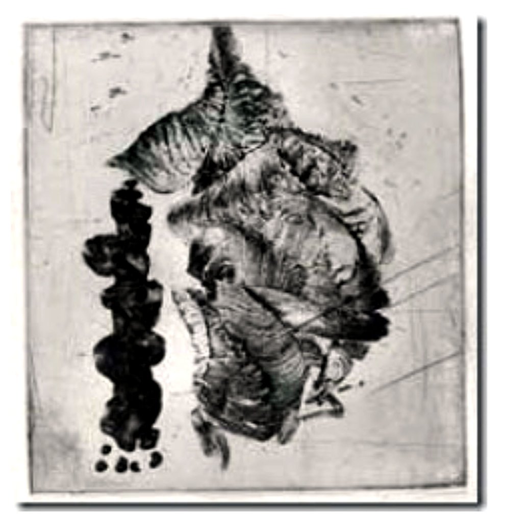 Toner image on copper plate: I have developed a process to use toner in the same way as ‘sugar-lift’ is used for images. This one is done on copper and is unusual as the metal does not produce a natural grain like aluminium and zinc, which produce