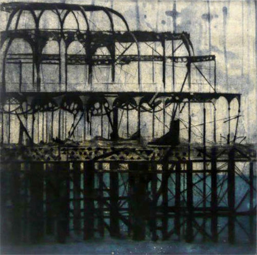 with my imagery, which I felt demanded a much larger format than I was able to print on my own press . Composing my images using exaggerated perspective and squeezing the subject matter tightly into the picture plain I could recreate the impact and power of these industrial structures.