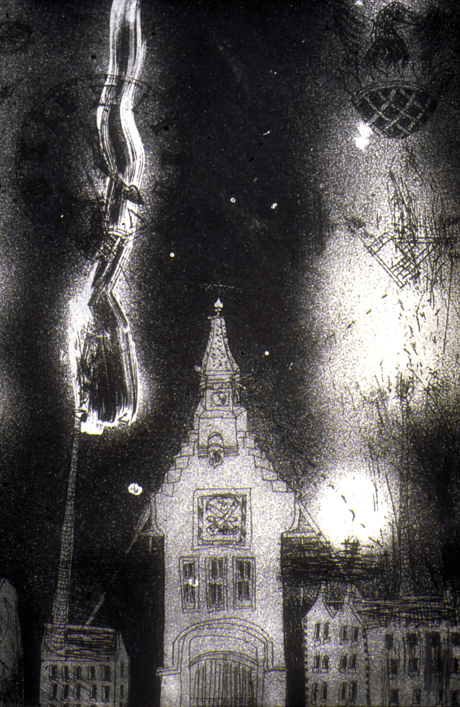 With most etch techniques only those marks incised into the plate create the intaglio whilst the largest portion of the metal remains intact as the surface of the plate. The opposite is the case with aquatint. Here the majority of the metal is removed, only the etch resistant dots remain on the surface like little islands in an eroded landscape. When working with aquatint it can be useful to have a different mental approach than to say line etching. Rather than thinking in terms of making direct black marks on a white background, the imagined background is potentially darkly tonal and it is the artist’s task to shape lighter areas from it. The image is created by painting with stop-out varnish or by any other etch resistant means such as adhesive tape, litho crayon etc.
