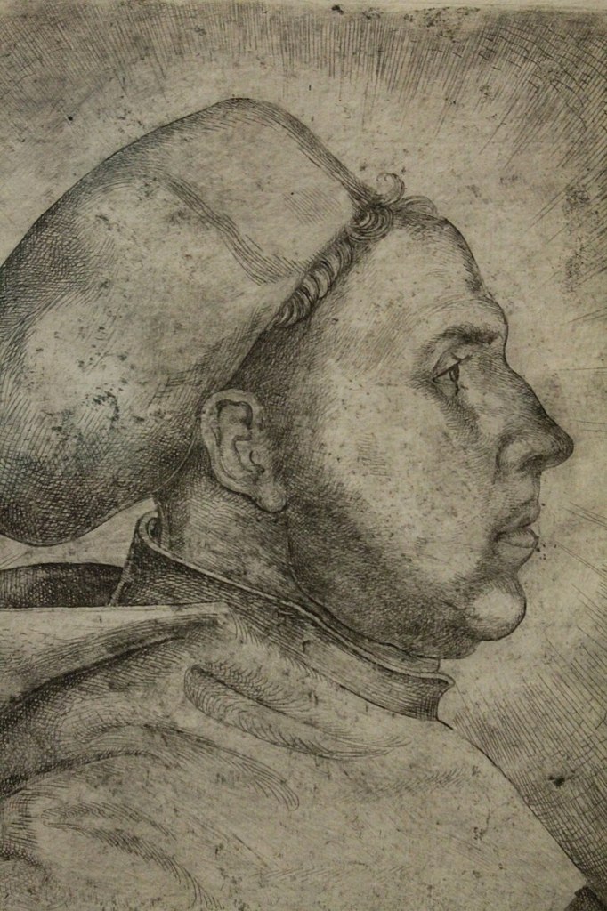 Daniel Hopfer: Portrait of Martin Luther, 1523; The artist is credited as the inventor of etching. His impressions were printed from acid etched steel plates. Prior to Hopfer etching had been known as a technique for incising metal armor, but not as a technique in art or artistic printing.