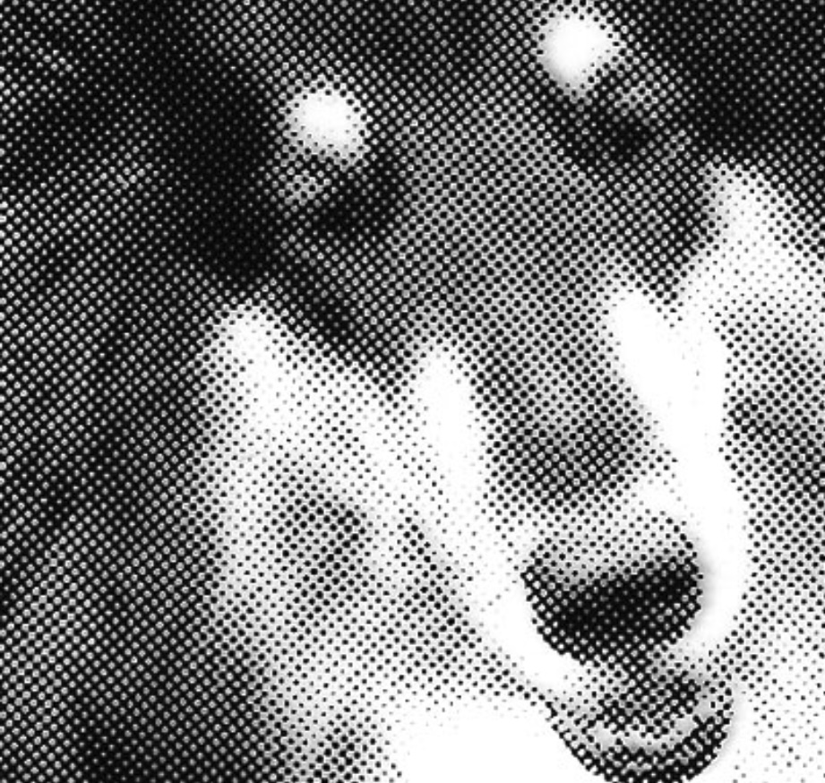 a halftone: levels of gray and color are translated into grid-like dot patterns of varying sizes, each color layer has a different structure and angle of dots