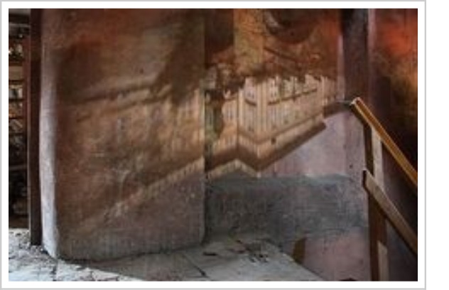 An image of the New Royal Palace at Prague Castle projected onto an attic wall by a hole in the tile roofing (Wikipedia)