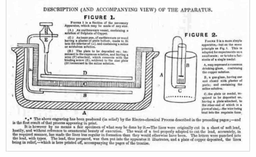 Description of early arrangement for elecrolytic ‘engraving’ by Thomas Spencer 1841