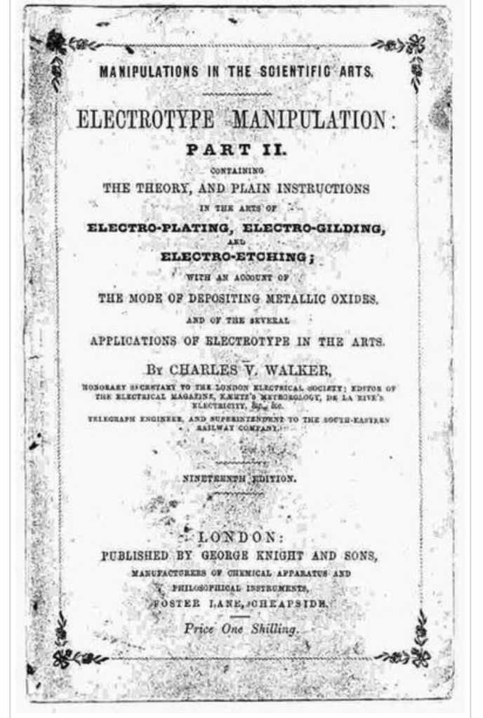 8 G. Barclay, The First Steps in Electrotype 2nd. edition, G. Barclay, Soho, London, 1841.