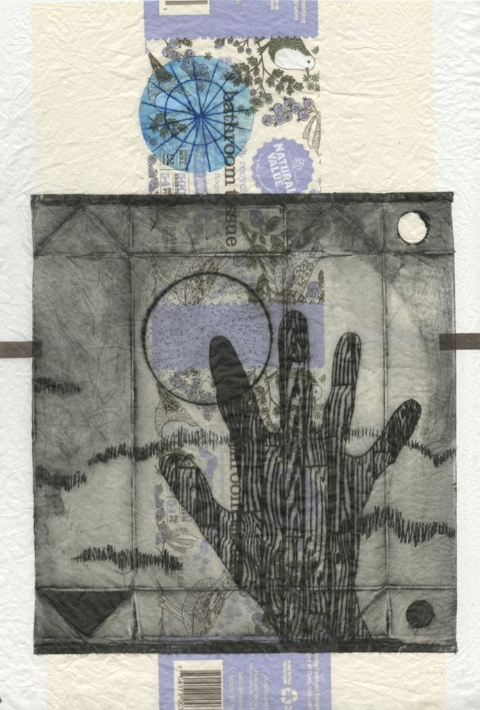 More recently, the multi-media artist and printmaker Angela Zammarelli found a way to recycle discarded product packages and use them as a printing plate for unique or limited edition intaglio prints. In 2014 she had been introduced to the concept by the artist Chloe Wilwerding when they both were interns at Zea Mays Printmaking. She tucked it away in her brain while working on other projects. Then in 2018 she really began to dive into the process.