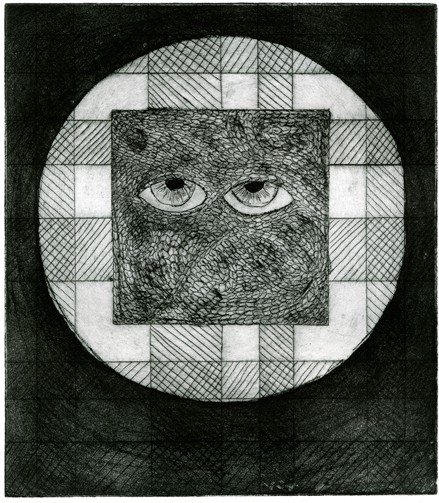 A.Z., To Be So Good, Drypoint in food container printed on Kitakata paper image 14″x14″ paper 20″x17″, 2024