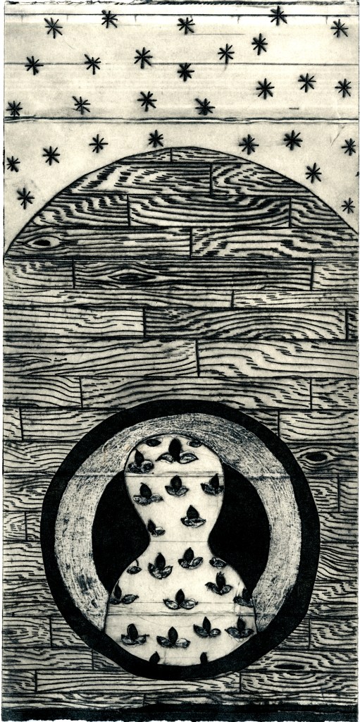 Phases, Drypoint and acrylic medium in beverage carton printed on Magnani Incisioni, 15″x11″, 2024